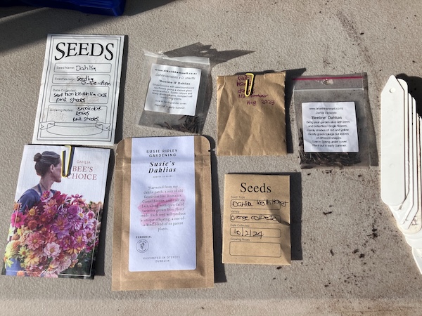 As part of my dahlia growing experiments this year, one of my goals is to grow my own dahlia plants from seed. I have a stash of dahlia seed available, including the Bee's Choice dahlia variety from Floret in the USA (which I bought from Emerden last year), Beeline I and II dahlia seeds from the breeder Doctor Keith Hammett in New Zealand, dahlia seeds from Susie Ripley's garden in Dunedin, and also open pollinated seeds from my own garden.