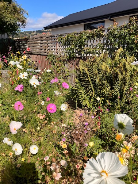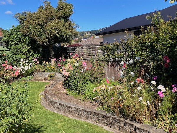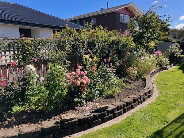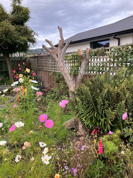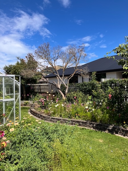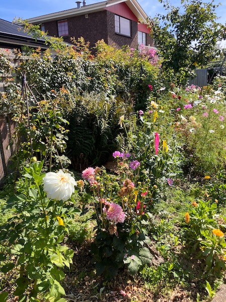 The resulting sunlight in this area of the garden after the tree had been taken down, is just amazing. There is now a lot more sun in the garden bed from early morning until early evening. Dahlia plants that had grown under the tree grew vigorously, and have even flowered.