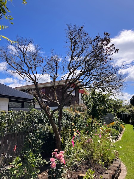 In the third week of October in 2025, a large wind storm blew through the South Island of New Zealand, causing wind damage throughout Otago and Southland, and cutting off power to thousands. At the time I thought my only plant casualties were some limbs coming off my quince tree, and my Avalanche camellia bush being snapped off at its base, but unknown to us at the time, my lilac tree had been damaged as well.