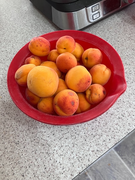 I have to admit I was annoyed with this occurrence, first of all it meant that no one else in the street could pick any apricots this summer, and two, I now had a bowl of unripe apricots which I now had to ripen. Luckily I had some ripe apricots for eating in my pantry, so I nestled them amongst the unripe apricots, and left them at room temperature with the hope they would indeed ripen.