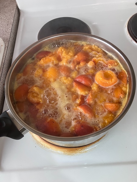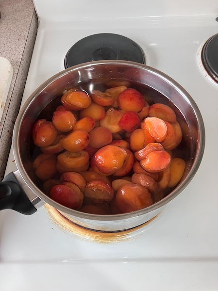 The first step was to defrost the 1 kg of apricots, and then I added it to a large pot along with 1 L of water.