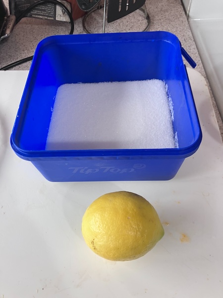 To the pot I then added 500 grams of granulated sugar, and the juice of 1 large lemon, and then simmered the pot for a further 5 minutes while stirring.