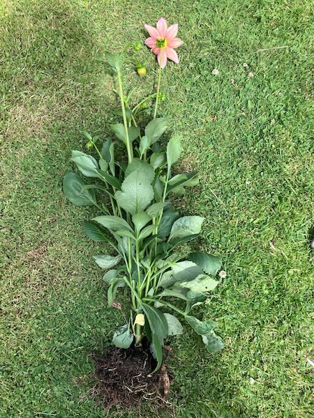 I've been growing dahlias from seed this year as part of my dahlia breeding program, and a lot of the dahlias that flower just don't have the characteristics I'm looking for in a great seedling. Either they're single dahlias, or they have very plain and boring colours, or their flower heads are weak (and they droop), so I pull them out of the ground once I'm sure I know what sort of dahlia they are like.