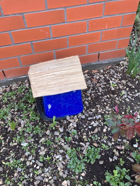 Over the last couple of years I've tried frost clothing my dahlias, but this method is prone to the wind blowing the frost cloth off overnight before the frost at dawn. So I've had to resort to a more brute force method of protecting my dahlias. After many trials, I finally settled on using a lot of small, cheap buckets, placing them on top of the dahlias on risky nights, and holding them in place with a spare piece of firewood.